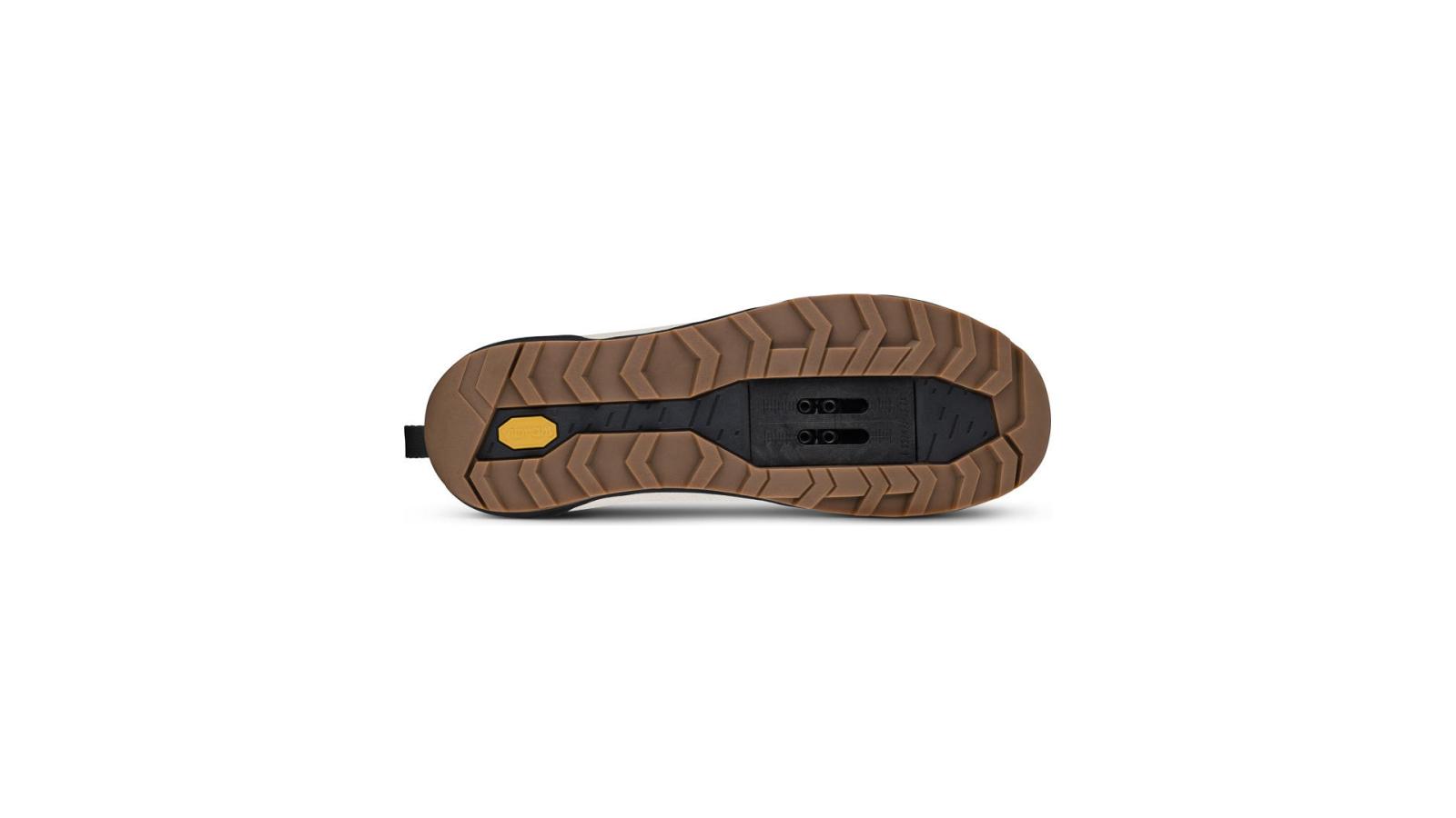Obermaterial: abriebfestes Ripstop, Laufsohle: Vibram Gummisohle mit EVA-Mittelsohle, Nylon-Einsatz zur Verstärkung der Pedalplatte, Stiffness Index: 3, Innensohle: fizik Cycling Insole, Verschluss: ergonomischer Ergolace -Schnürverschluss