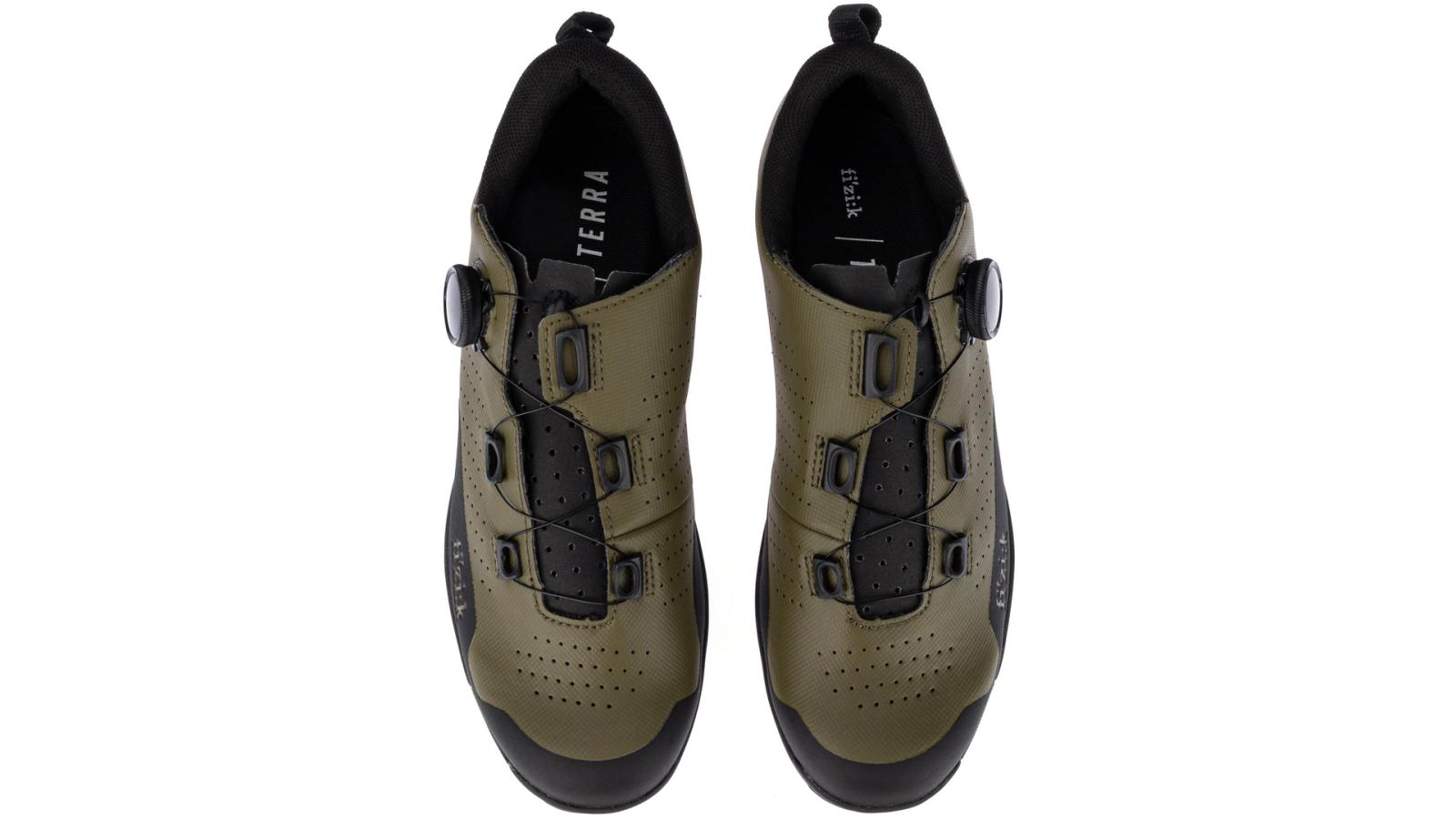 Obermaterial: Microtex Laser Perforated, Volume Control, Schlaufe am Hacken zur Befestigung am Rad oder Rucksack, Laufsohle: X5 Nylon mit gummierten Stollen, Innensohle: fi'zi:k Cycling Insole, Verschluss: 1 x BOA L6