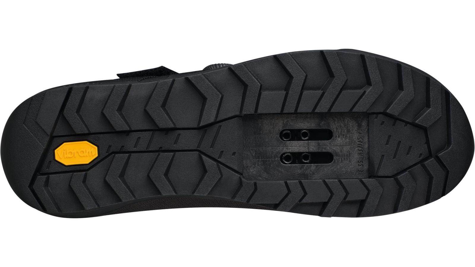 Obermaterial: abriebfestes Ripstop mit wasserdichter und atmungsaktiver Clima-Membran, integrierte Stoff-Gamasche, Laufsohle: Vibram Gummisohle mit EVA-Mittelsohle, Nylon-Einsatz zur Verstärkung der Pedalplatte, Stiffness Index: 3, Innensohle: fizik Cycling Insole, Verschluss: 1 x Boa L6, 1 x Strap