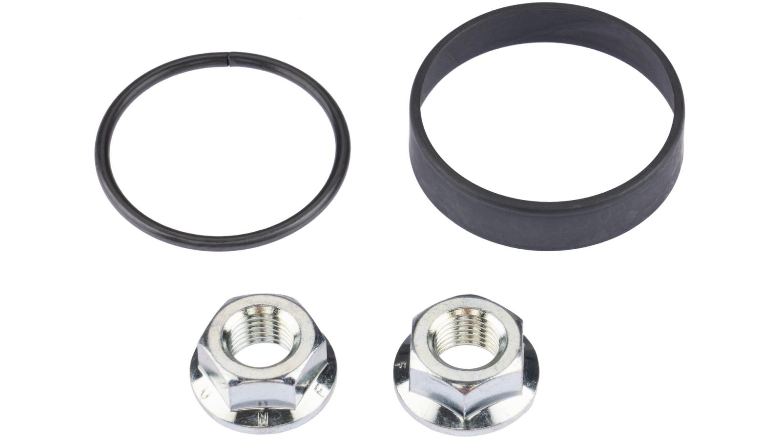 Staubkappe, Sprengring und Achsmuttern, nur verwendbar mit Shim. 1-Gang Nabe (03450202)