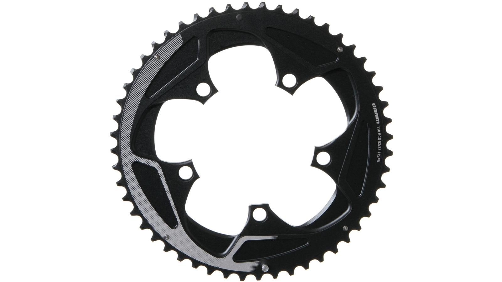 52 Zähne, 110 mm Lochkreis, für Rival 36/52 Zähne, schwarz/silber